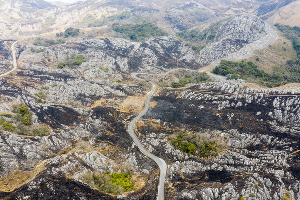 サイクリストのみなさん!遂に春の香りがしてきてテンション上がってきているのではないでしょうか? やはり13度をこえてくるとぜんぜんちがいますね。今日は休日だったので北九州の平尾台にいってきました。なぜ平尾台なのか?皿倉山が復旧していないからではありませんよ。北九州の誇る景勝地の平尾台、なんと今がベストシーズンとなっております。理由はタイトルにもある通り、ずばり野焼です。野焼とは生えてる草をガンガン燃やしまくって肥料にするのです、そして質のいい新しい草が生えてきます。今年の平尾台の野焼は2/24、つい一昨日に行われました!燃やしたてです。焼けた臭いがまだところどころしていました。ドローンで空からみると尋常じゃないくらい広いエリアを燃やしまくってました。約340㏊だそうです。