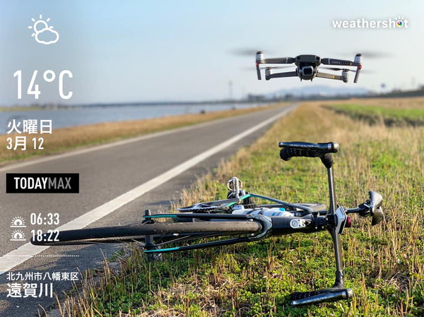 遠賀川まで戻ってドローンでも飛ばして遊ぶことに・・・ドローンももってきてなかったらマジで無駄足だった。強風なので置いていこうとおもったけどもってきて正解だった!